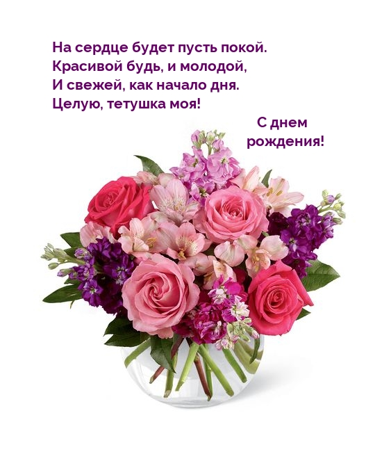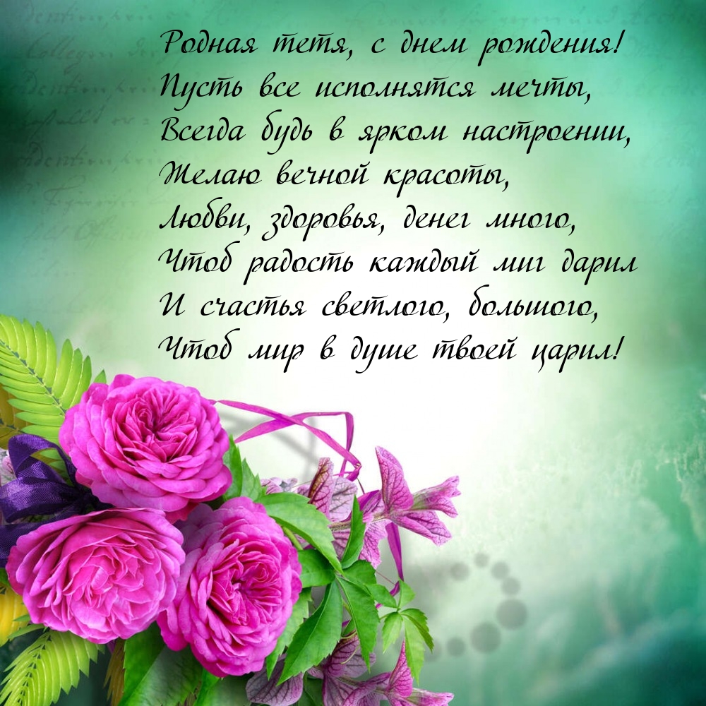 Сказать Тёте просто – с Днём Рождения, слишком мало, ведь она является родным человеком для вас. Лучше отправить вот эти открытки, в них и поздравления и цветы, и тепло души.