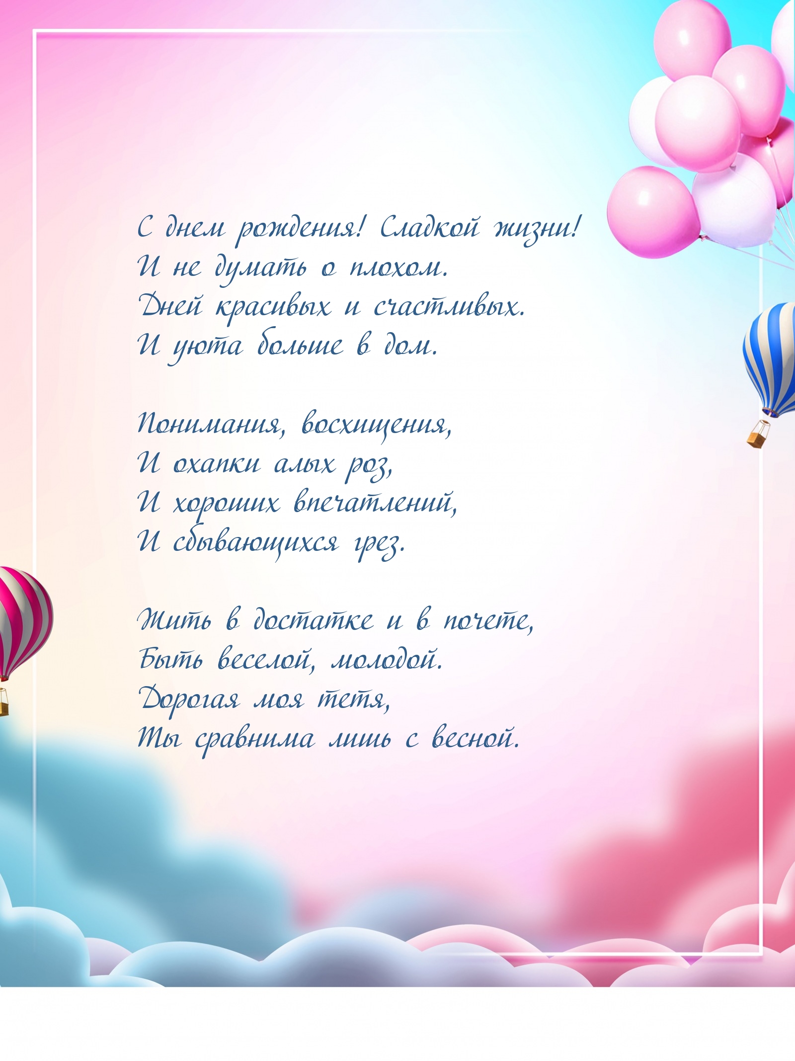 С днем рождения поздравляем, тётя милая родная,